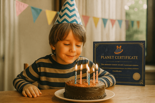 Make your planet truly yours by customizing your official certificate: – Name your planet anything you want (up to 50 characters) – Add the recipient’s name as the official owner – Include a special date (discovery date, birth date, anniversary) – Write a personal dedication message (optional) – Choose your preferred certificate design (classic, modern, or premium)